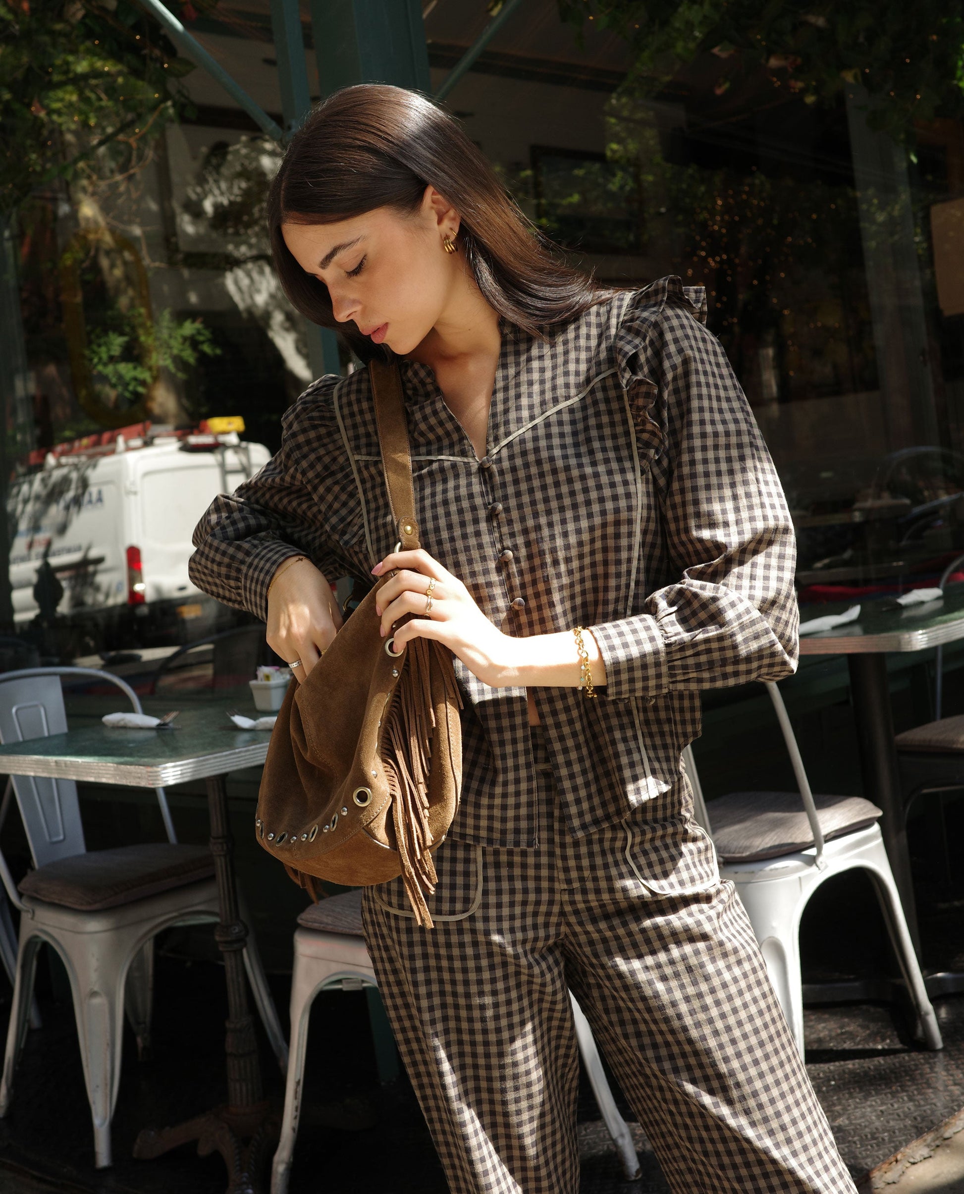 BLUSA FIRST COFFEE · CUADROS