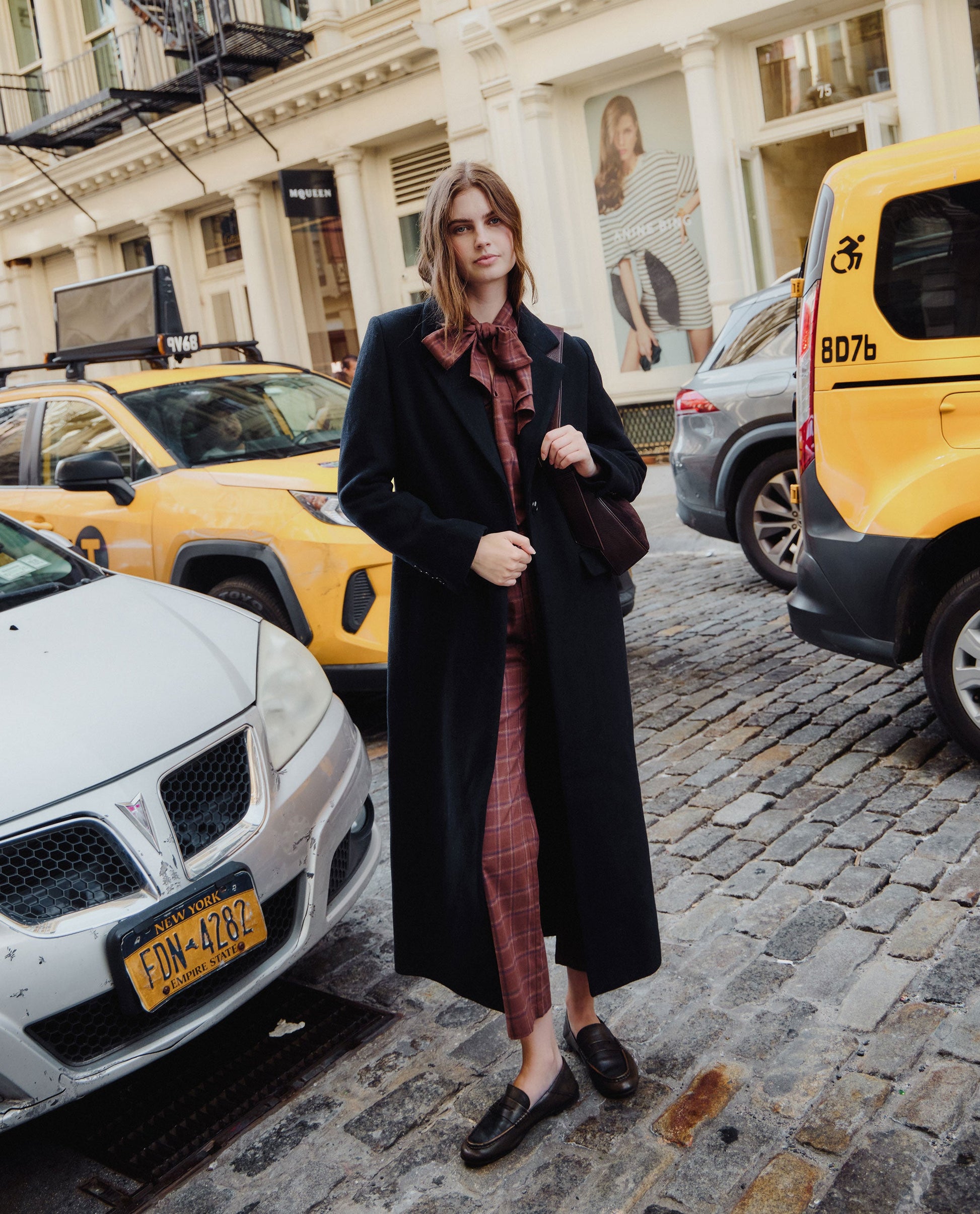 - Largo a la cadera, para llevar por dentro o por fuera del pantalón[sizes] La modelo de estudio mide 1.75 y lleva habitualmente la XS de top y 34 de pantalón. De esta blusa lleva la talla XS.