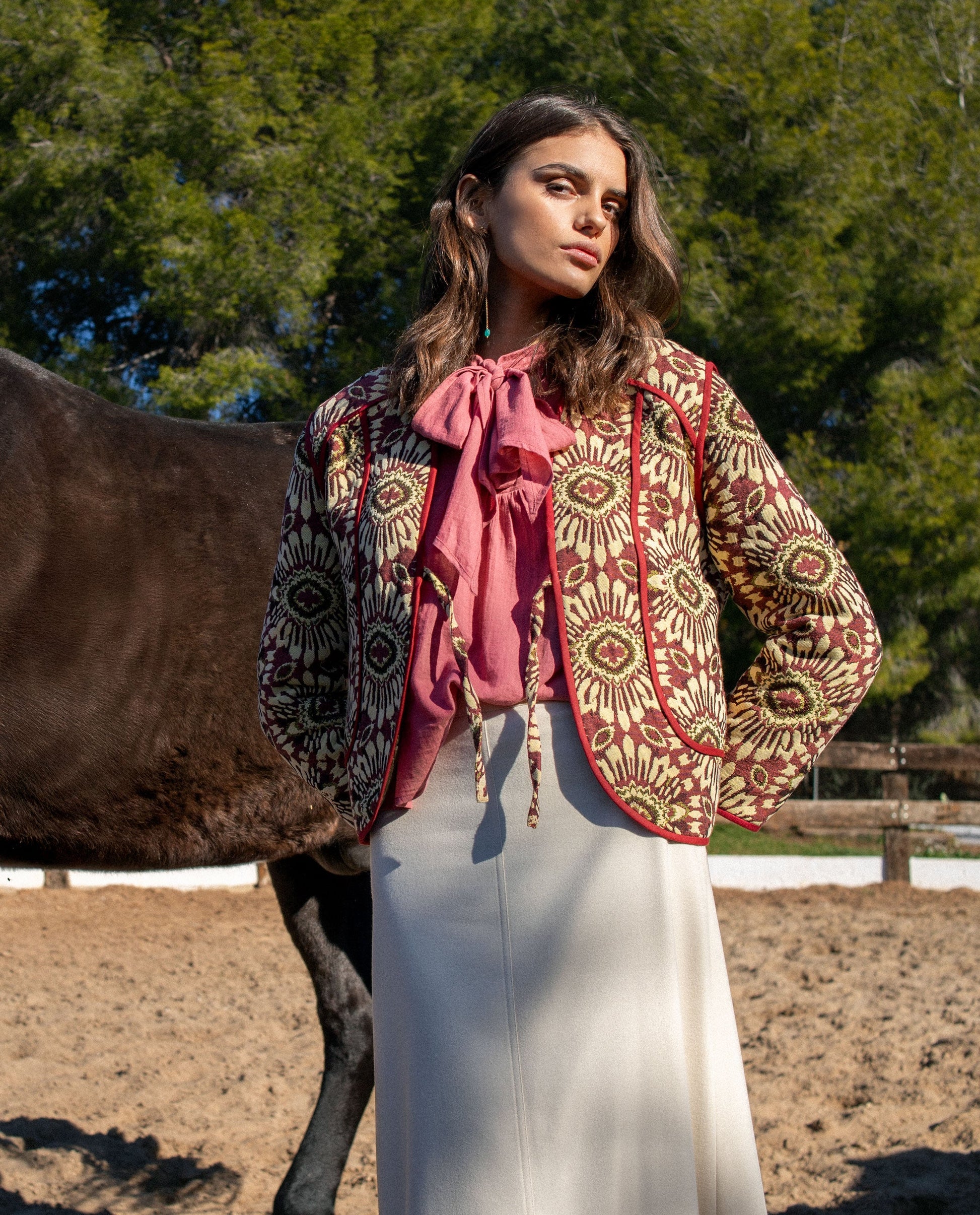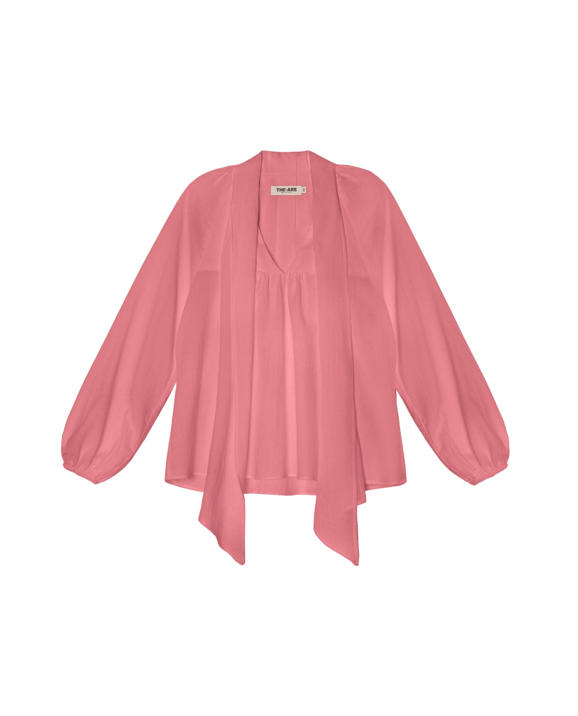 - Blusa fluida con lazada al cuello.