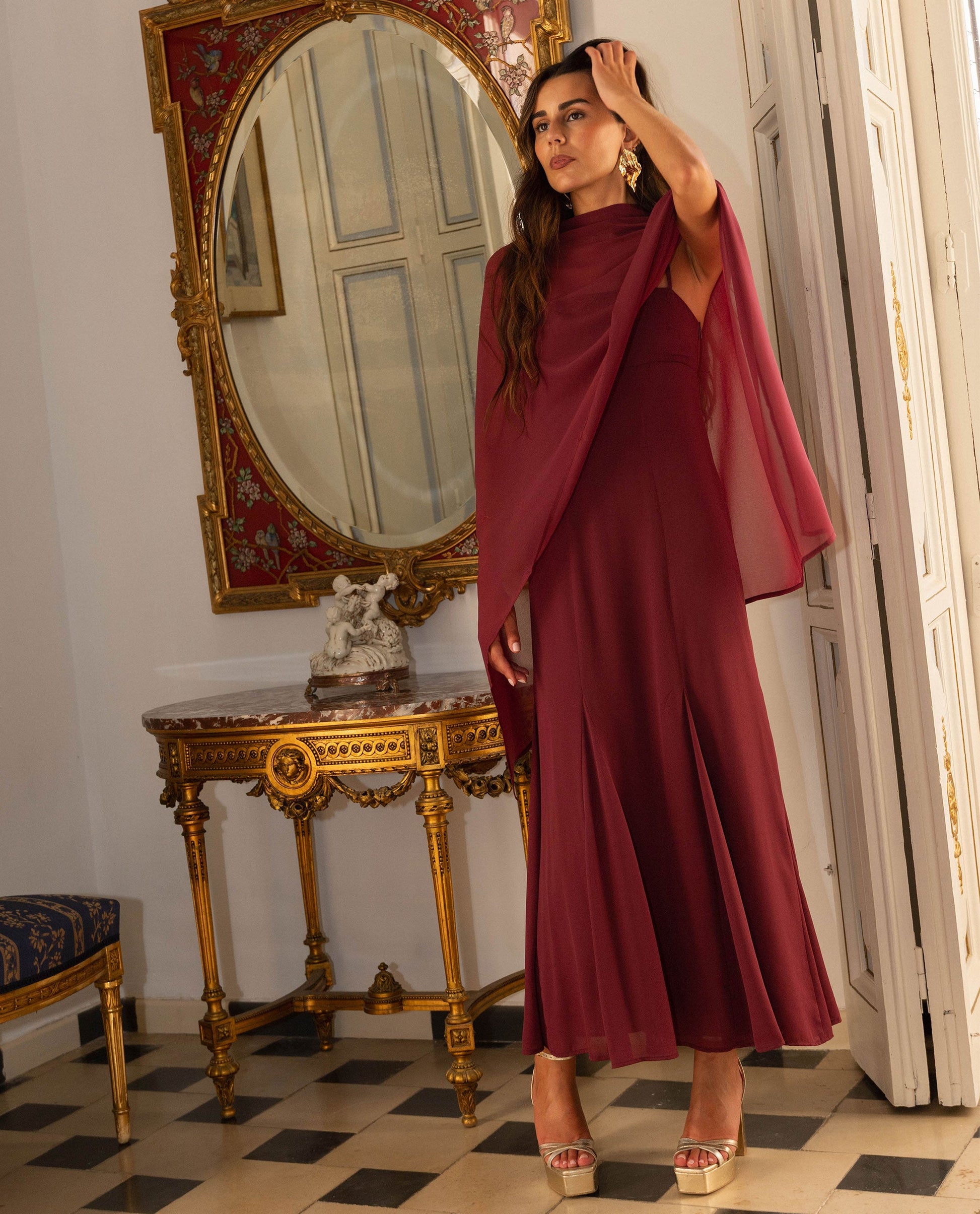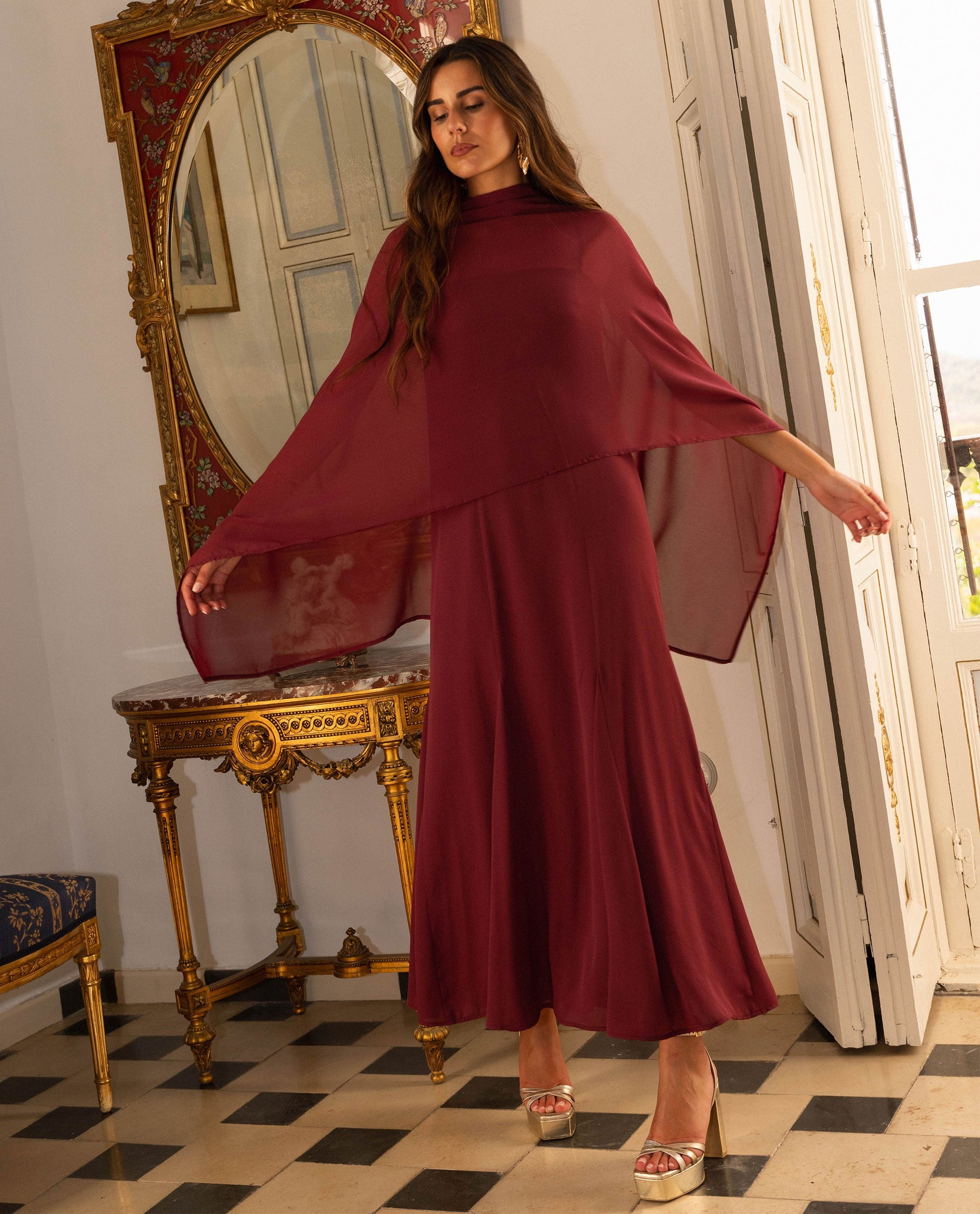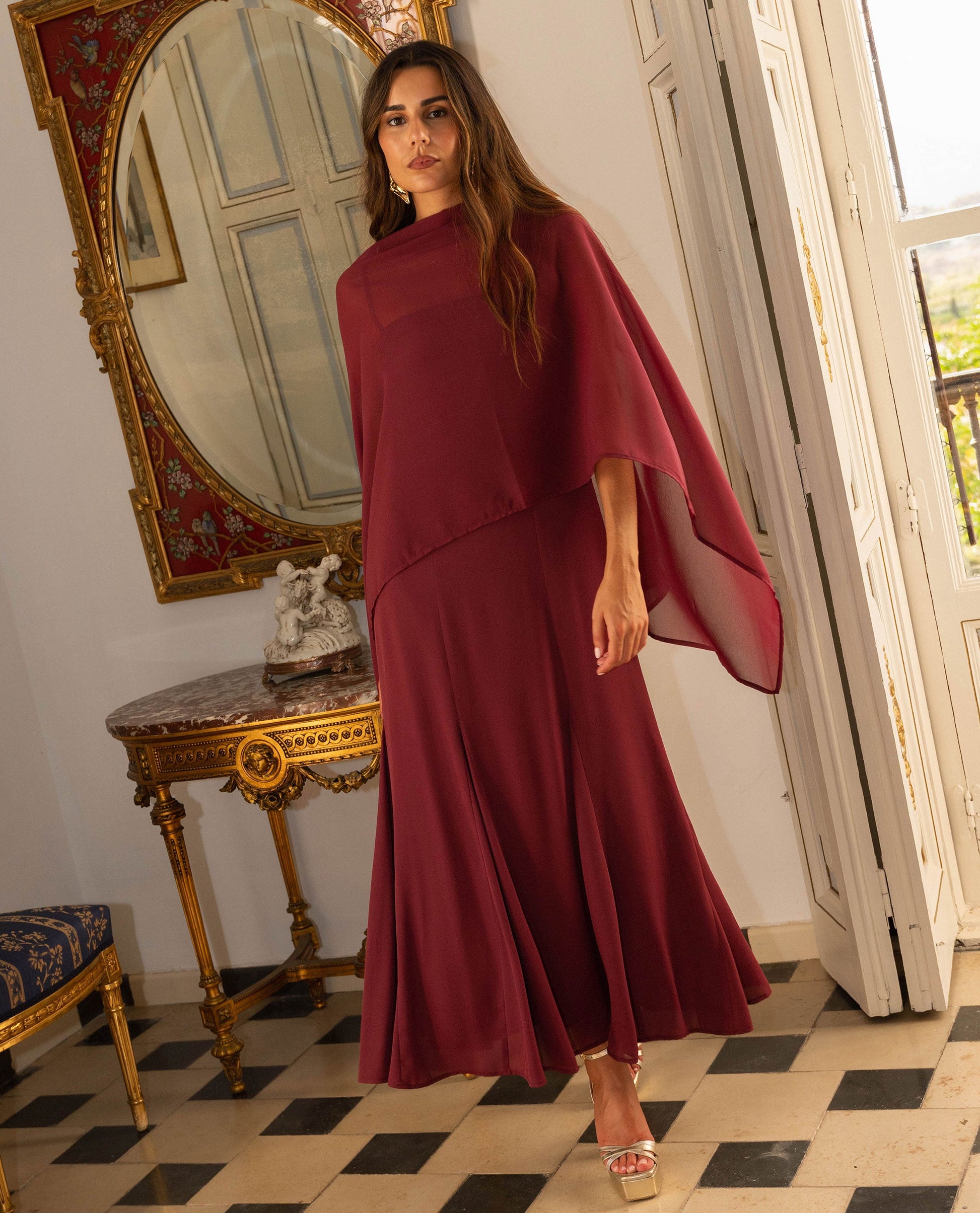 Capa cereza de gasa para eventos.[readmore]Uno de los complementos más buscados para eventos por su versatilidad y funcionalidad. Esta capa de invitada está confeccionada en un tejido de gasa súper fluido, sedoso y agradable al tacto que elevará cualquier look a otro nivel.