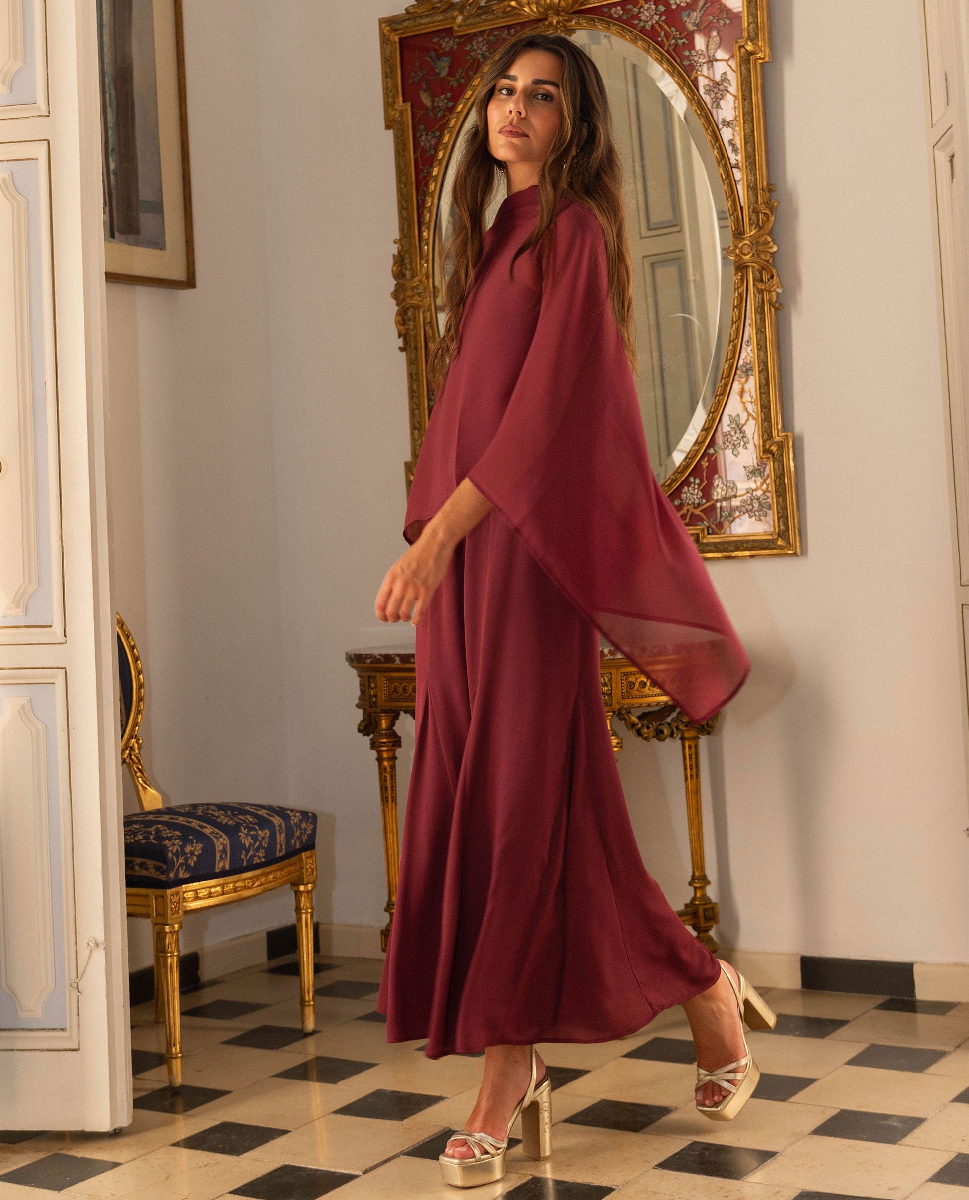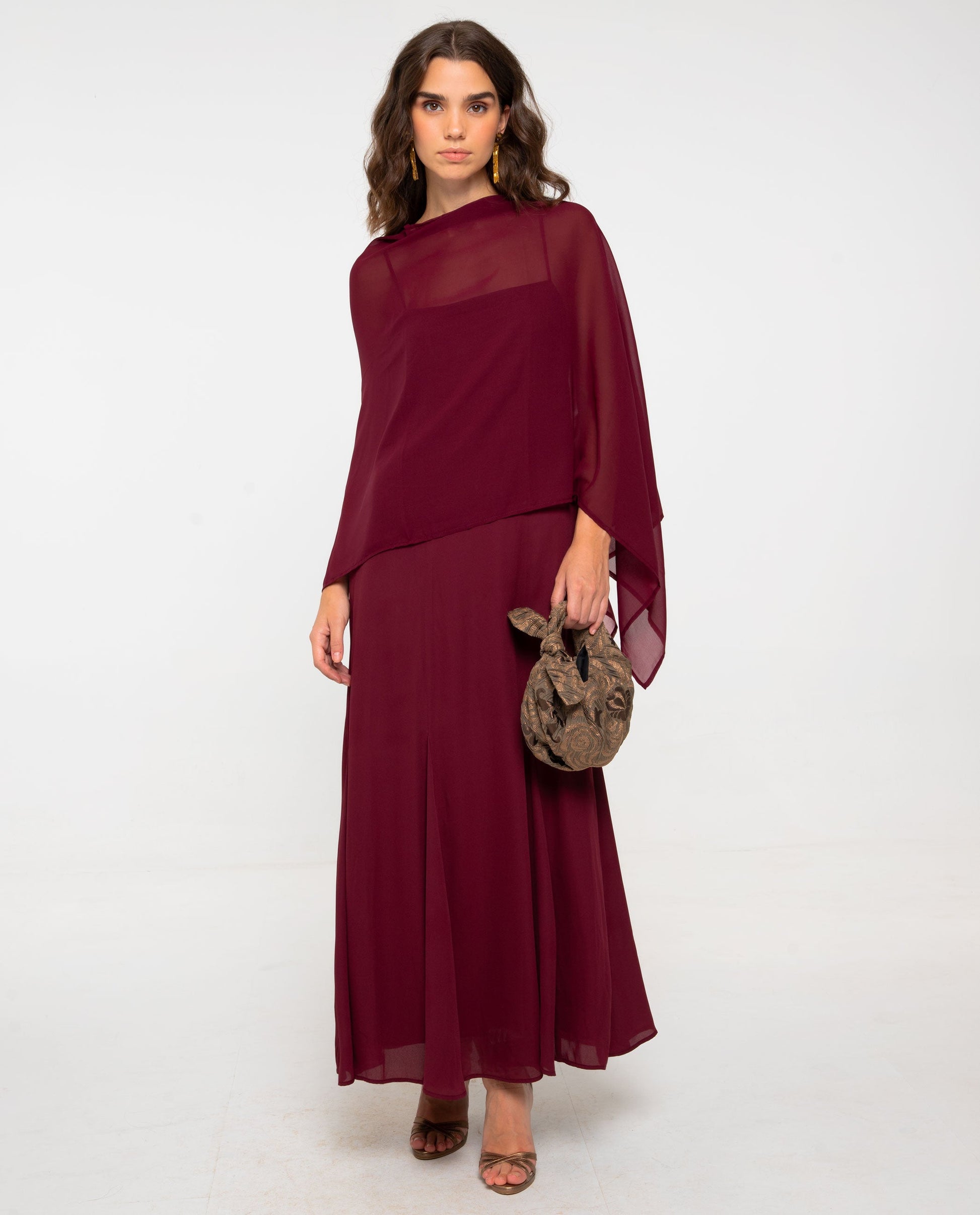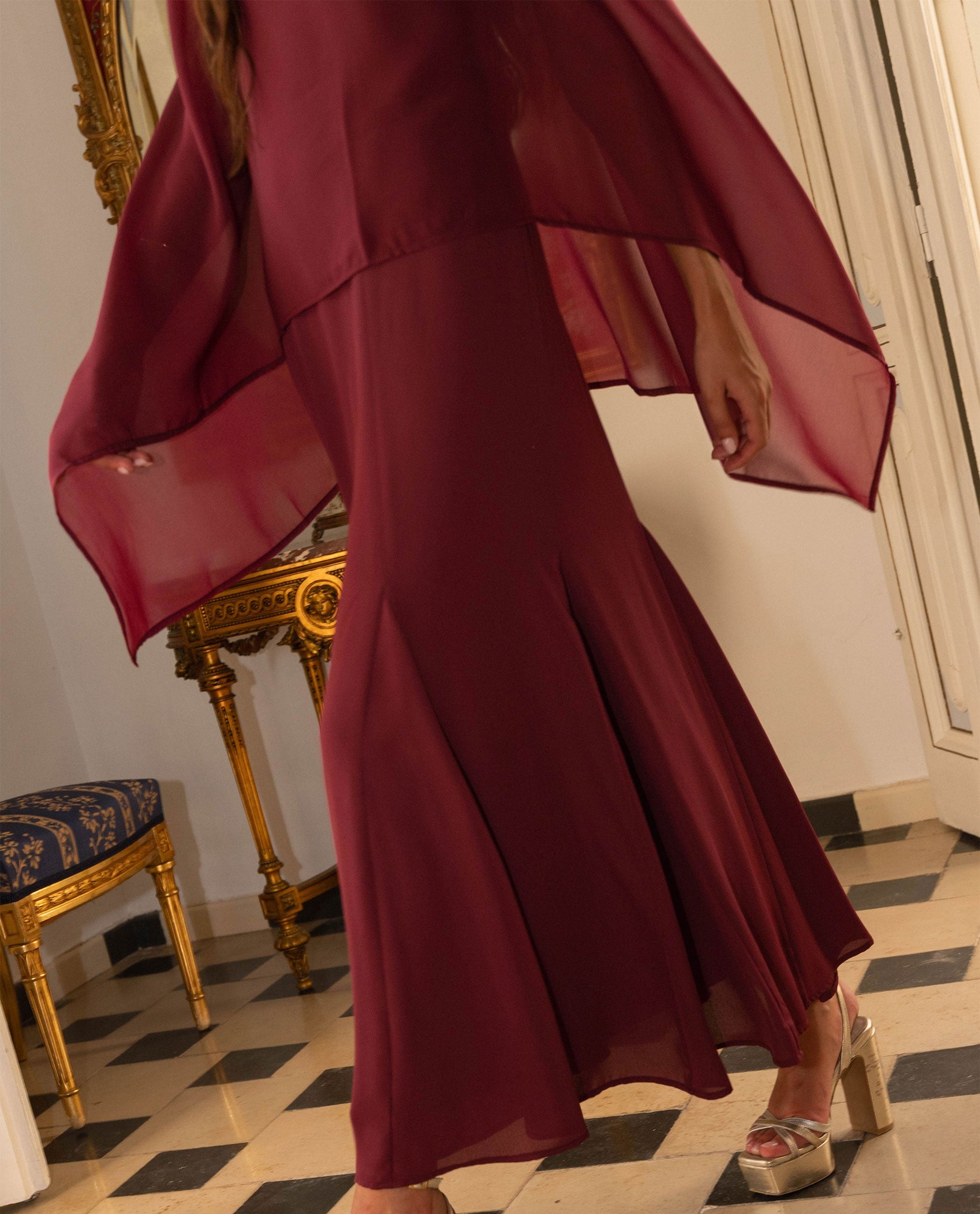 Capa cereza de gasa para eventos.[readmore]Uno de los complementos más buscados para eventos por su versatilidad y funcionalidad. Esta capa de invitada está confeccionada en un tejido de gasa súper fluido, sedoso y agradable al tacto que elevará cualquier look a otro nivel.