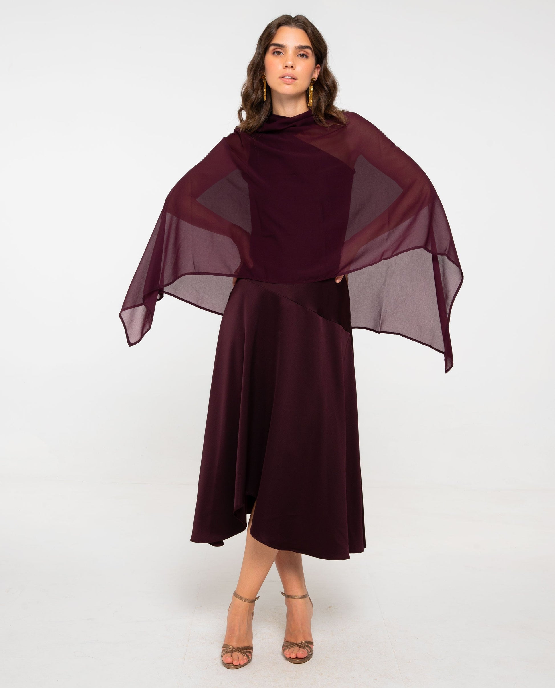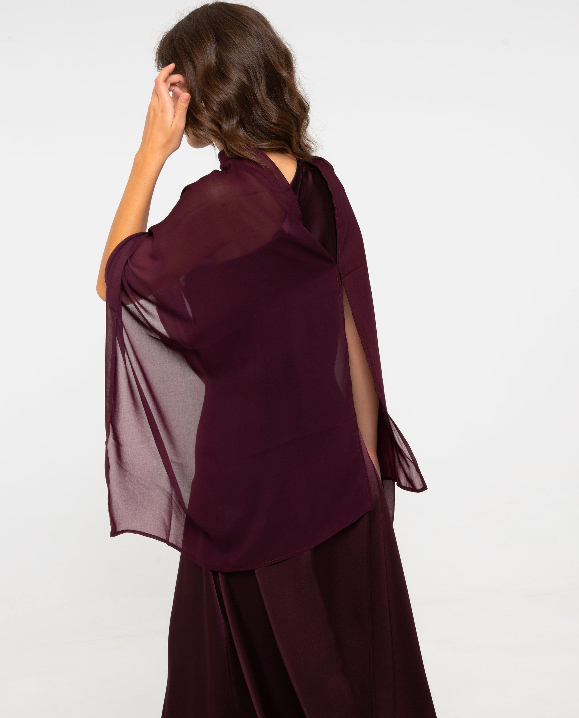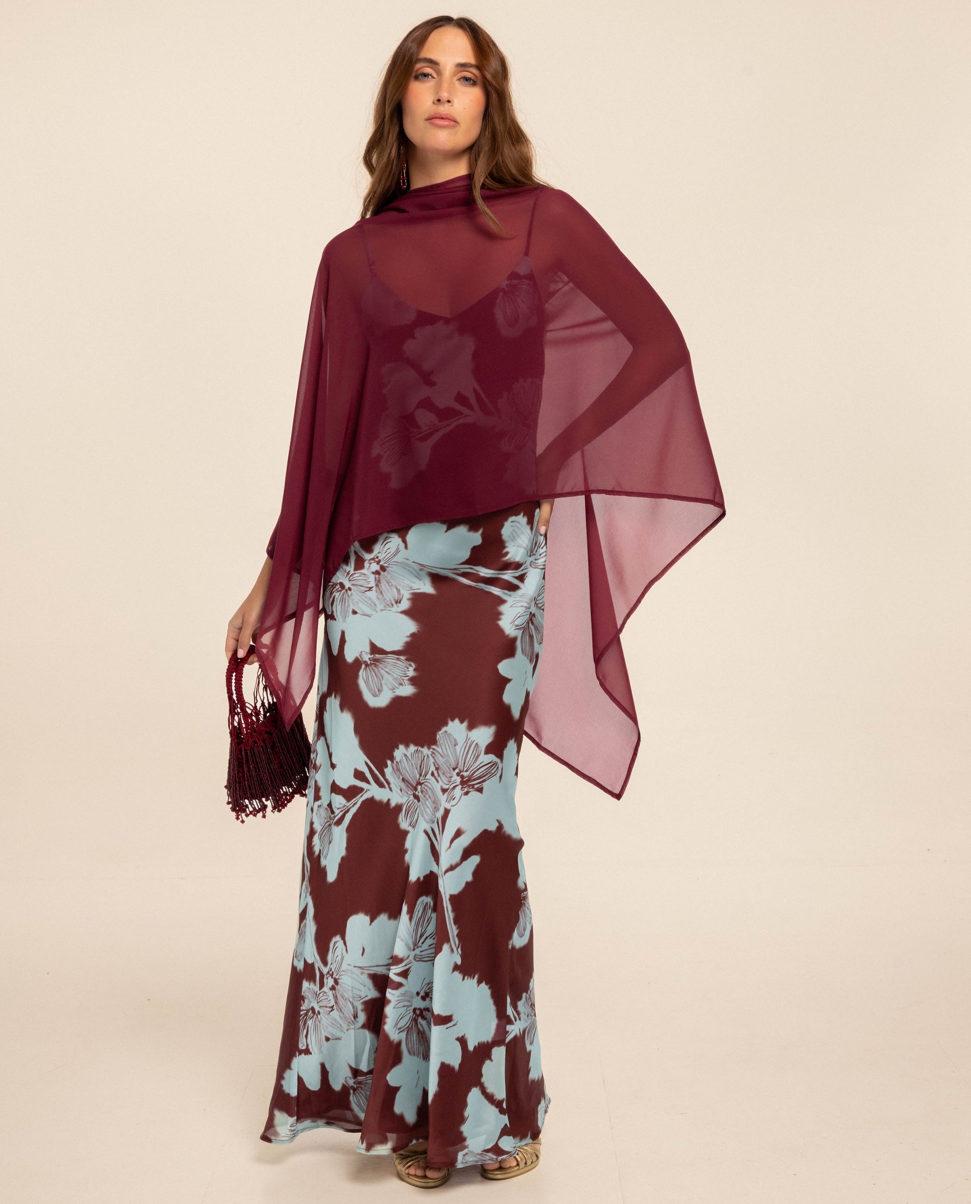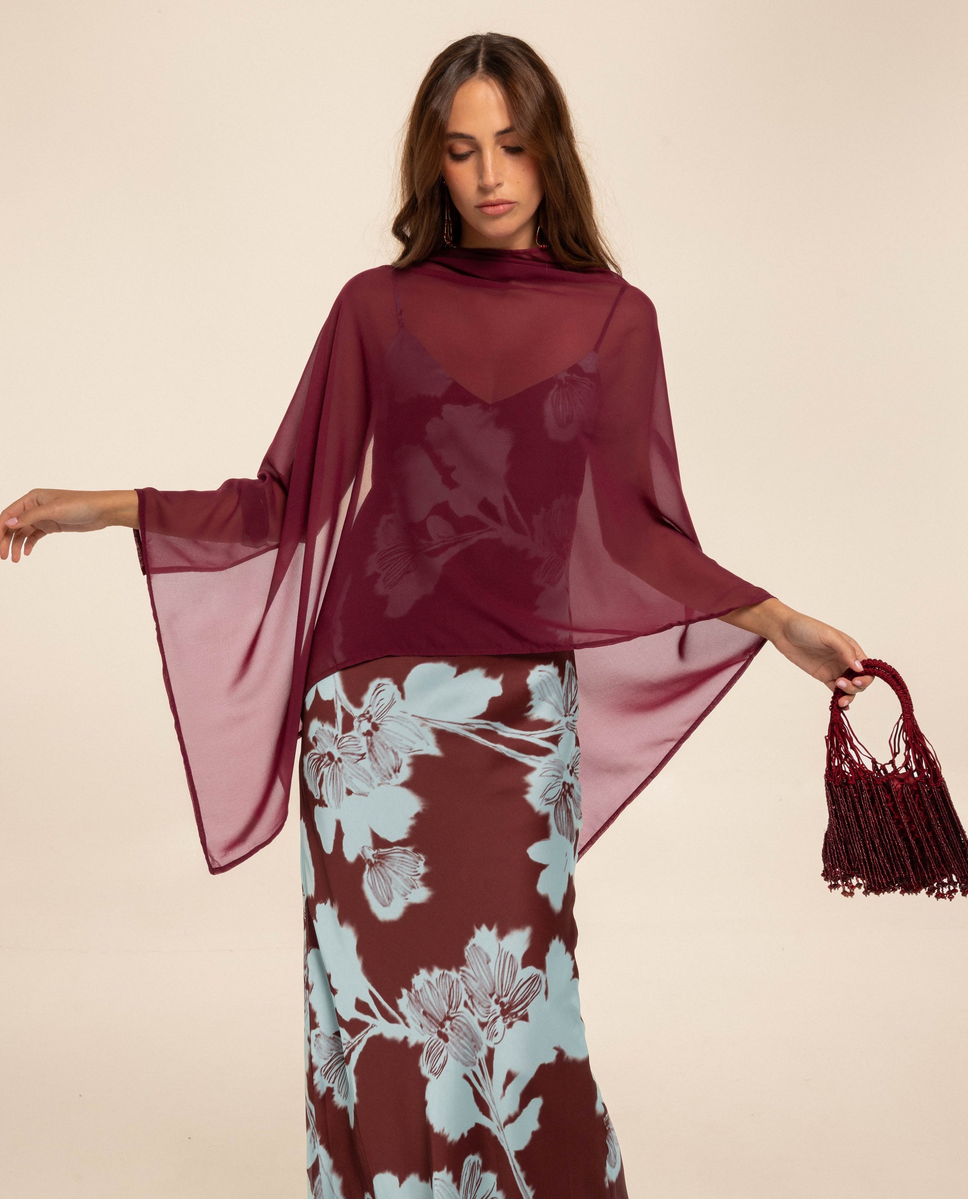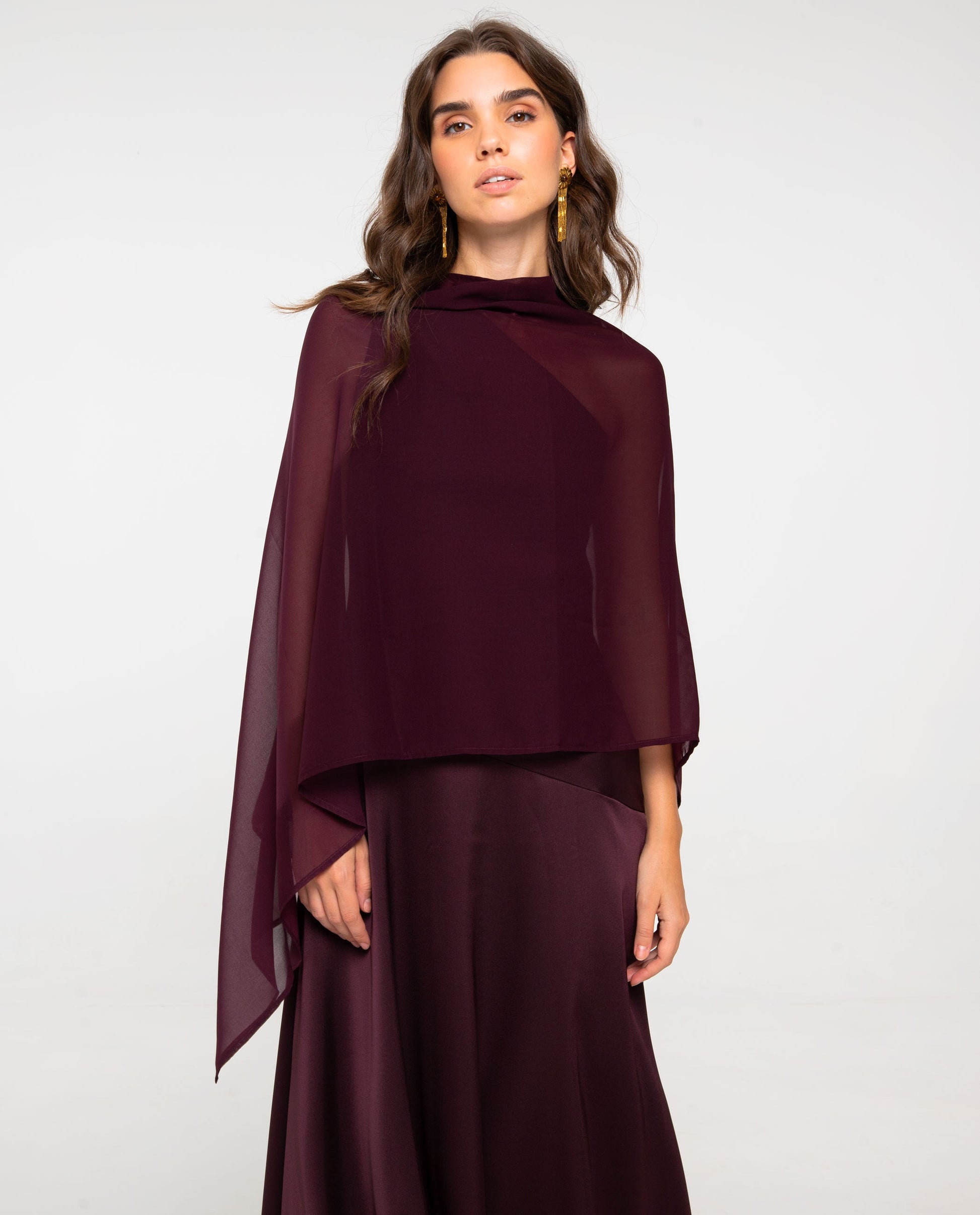 Capa de gasa para eventos.[readmore]Uno de los complementos más buscados para eventos por su versatilidad y funcionalidad. Esta capa de invitada unida está confeccionada en un tejido de gasa fluido, sedoso y agradable al tacto que elevará cualquier look a otro nivel. Elegimos el color ciruela con un poco de brillo por lo elegante y favorecedor que sienta.