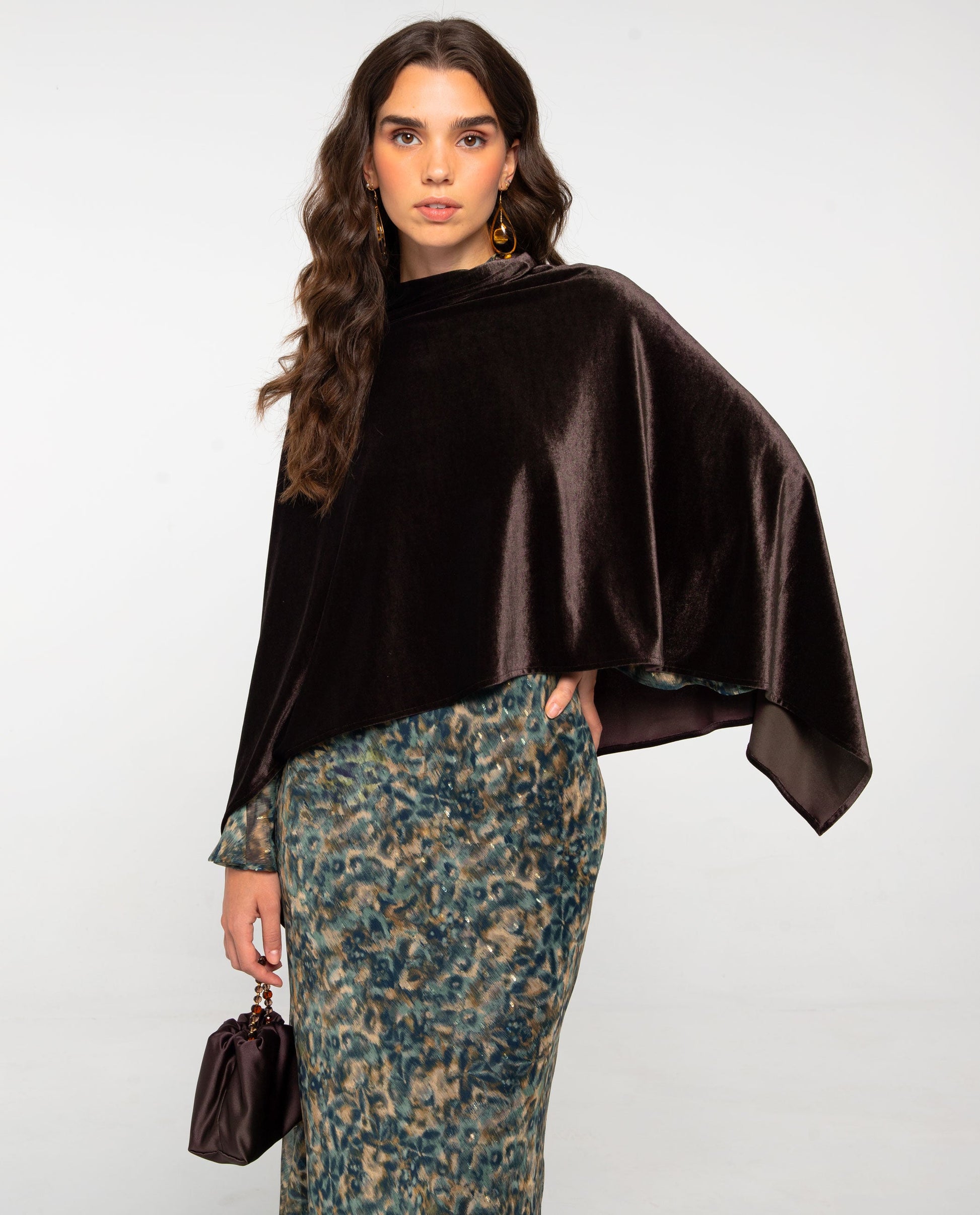 Capa de terciopelo marrón de invitada.[readmore]Uno de los complementos más buscados por los las invitadas de otoño-invierno. Esta capa de invitada aterciopelada, muy agradable al tacto, está unida y es el complemento perfecto para elevar tus looks más elegantes. Es muy agradable al texto y el color marrón además de ser muy favorecedor, esta temporada es todo un must have.