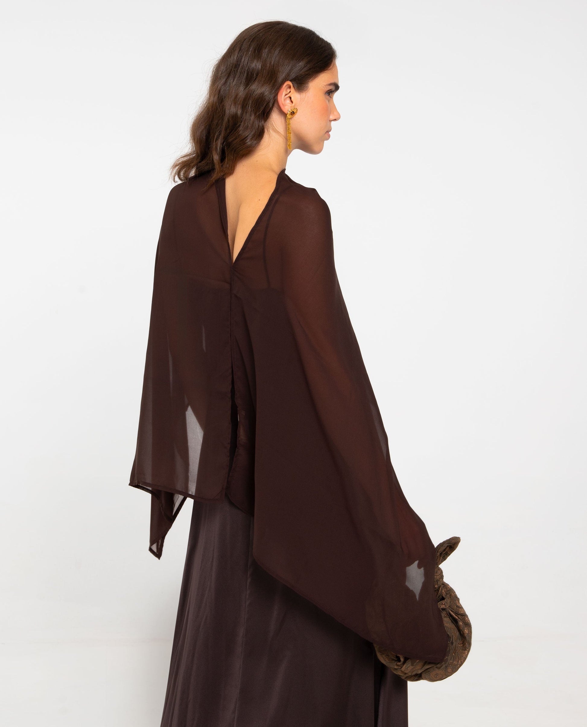 - Capa de invitada en tono marrón.