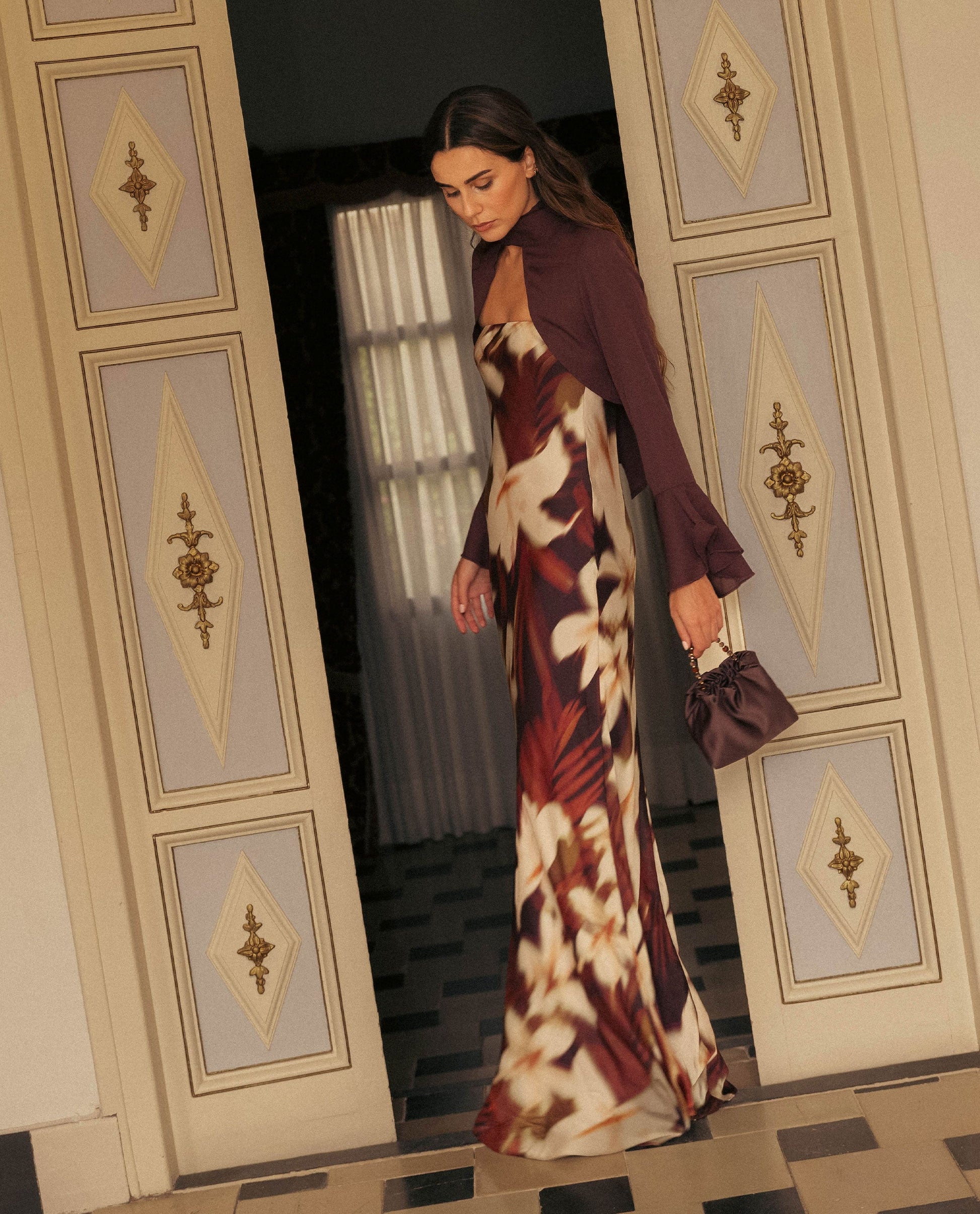 Mangas tipo chaqueta de gasa ciruela [readmore]Un diseño especial con dos mangas atadas al cuello. El escote es al cuello cerrado con una lazada en la espalda. La lazada puedes atarla con multiposición. Las mangas son largas tipo raglán con volantes en el bajo. Ideal para llevar encima de tus vestidos sin mangas.[sizes]La modelo de estudio mide 1.79 y lleva habitualmente la XS de top y 34 de pantalón. De esta chaqueta lleva la talla XS.