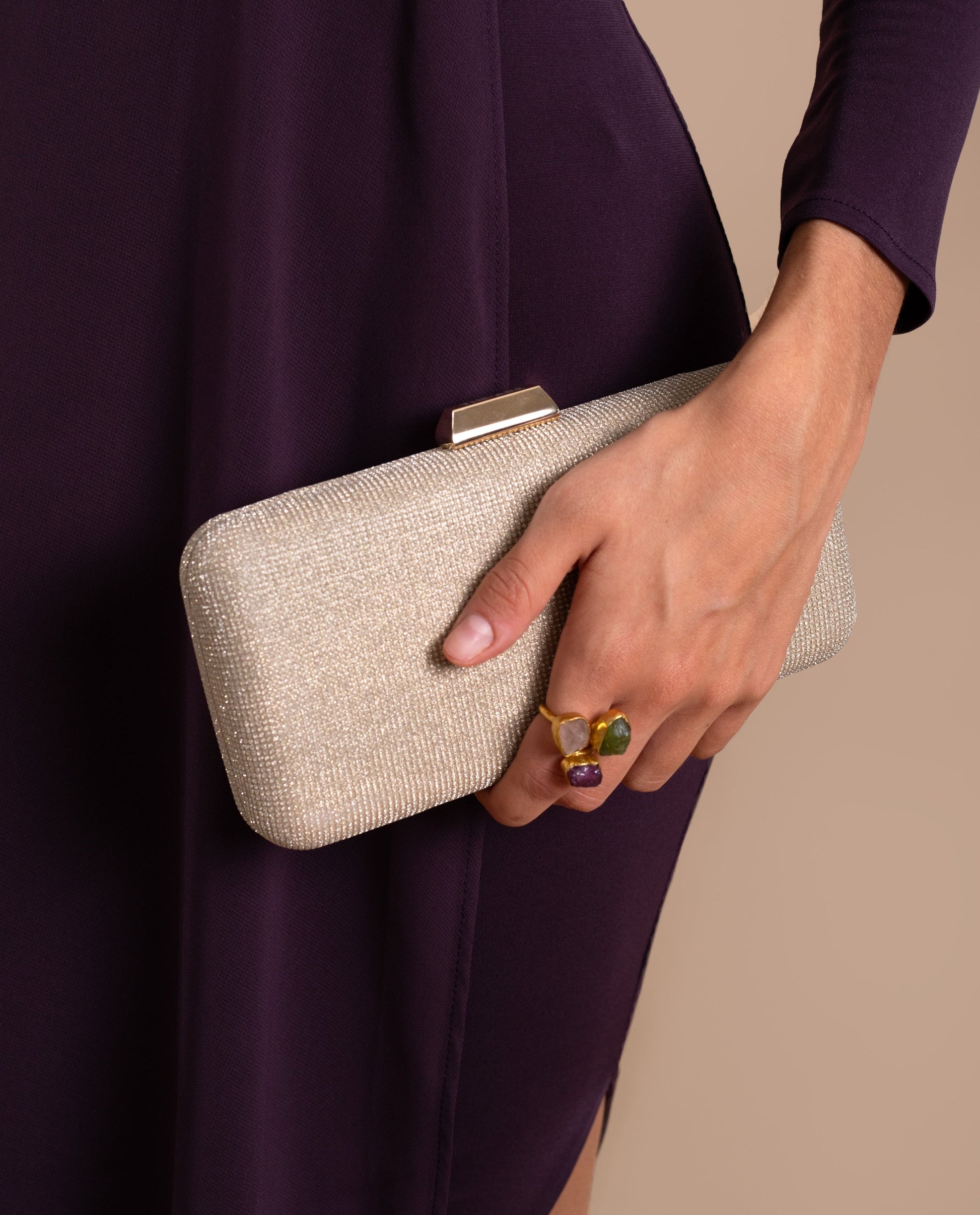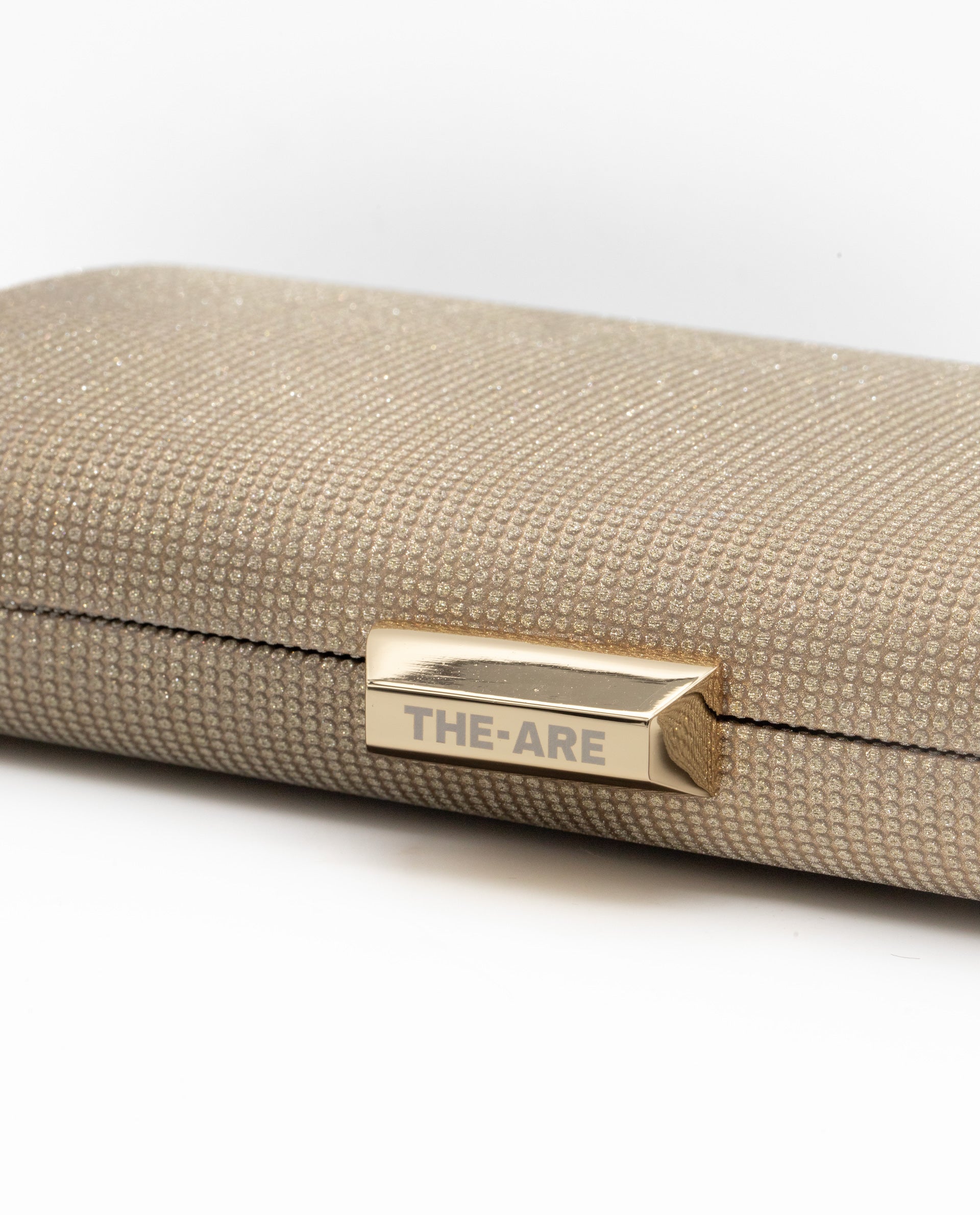 Bolso de fiesta dorado con glitter para eventos.[readmore]Tienes justo delante el bolso perfecto para tu próximo evento porque combina con absolutamente todo! El tejido es suave, con un poco de textura y brillo, es muy elegante y tiene el tamaño ideal para llevar lo imprescindible. Lleva una cadena dorada en el interior para colgar.