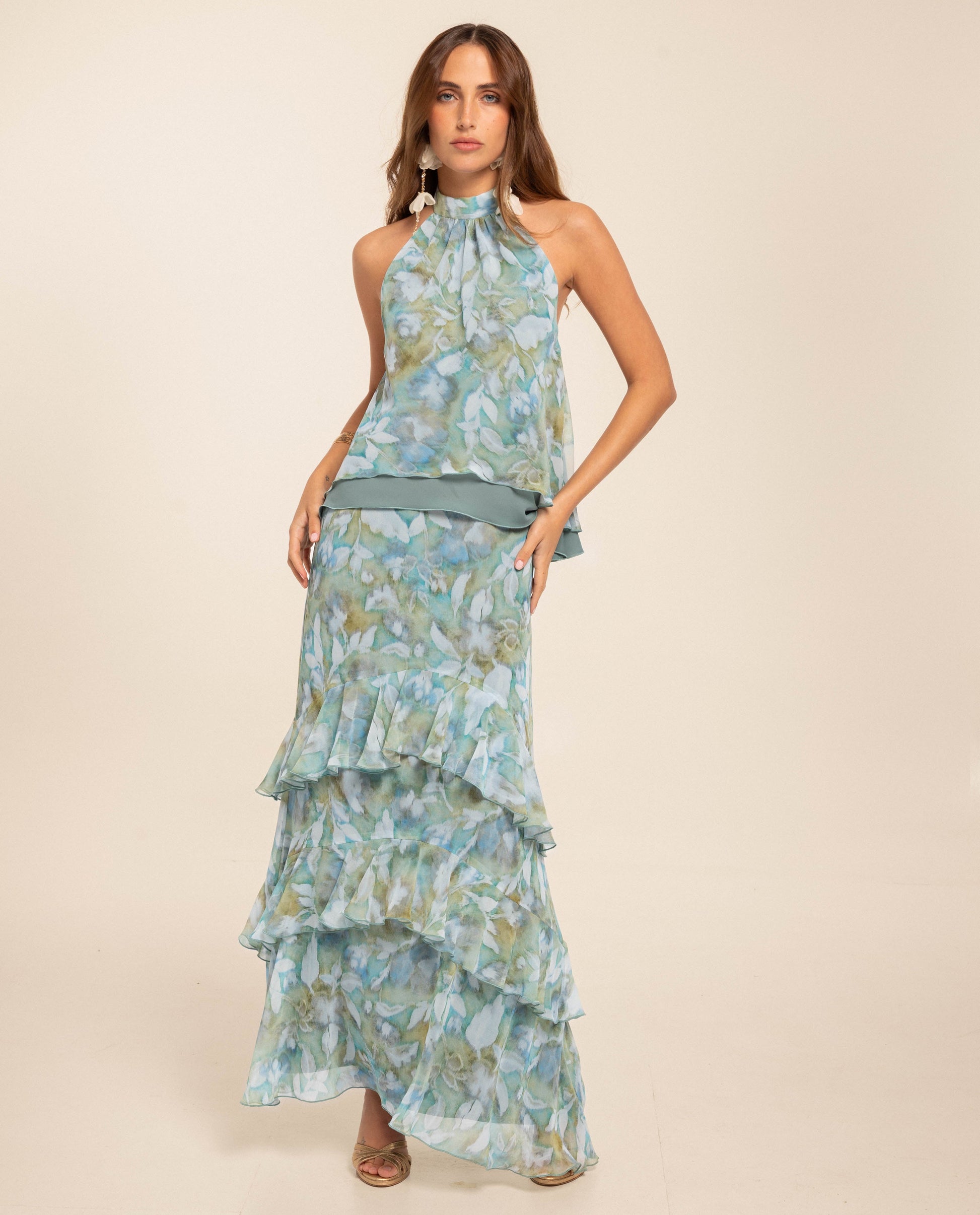Falda evasé con volantes estampada [readmore] Una de nuestras faldas favoritas para eventos por su movimiento y lo bien que sienta. La hemos diseñado con un corte evasé que estiliza y dos volantes estratégicos: en la parte delantera están cosidos en forma de "V" invertida para alargar la silueta. Es comodísima gracias a la goma elástica en la cintura. Llévala con la blusa Charlotte a conjunto para conseguir ese total look impecable y favorecedor que tanto nos pedís. [sizes] La modelo de estudio mide 1.72 y lleva habitualmente la XS de top y 34 de pantalón. De esta falda lleva la talla XS.