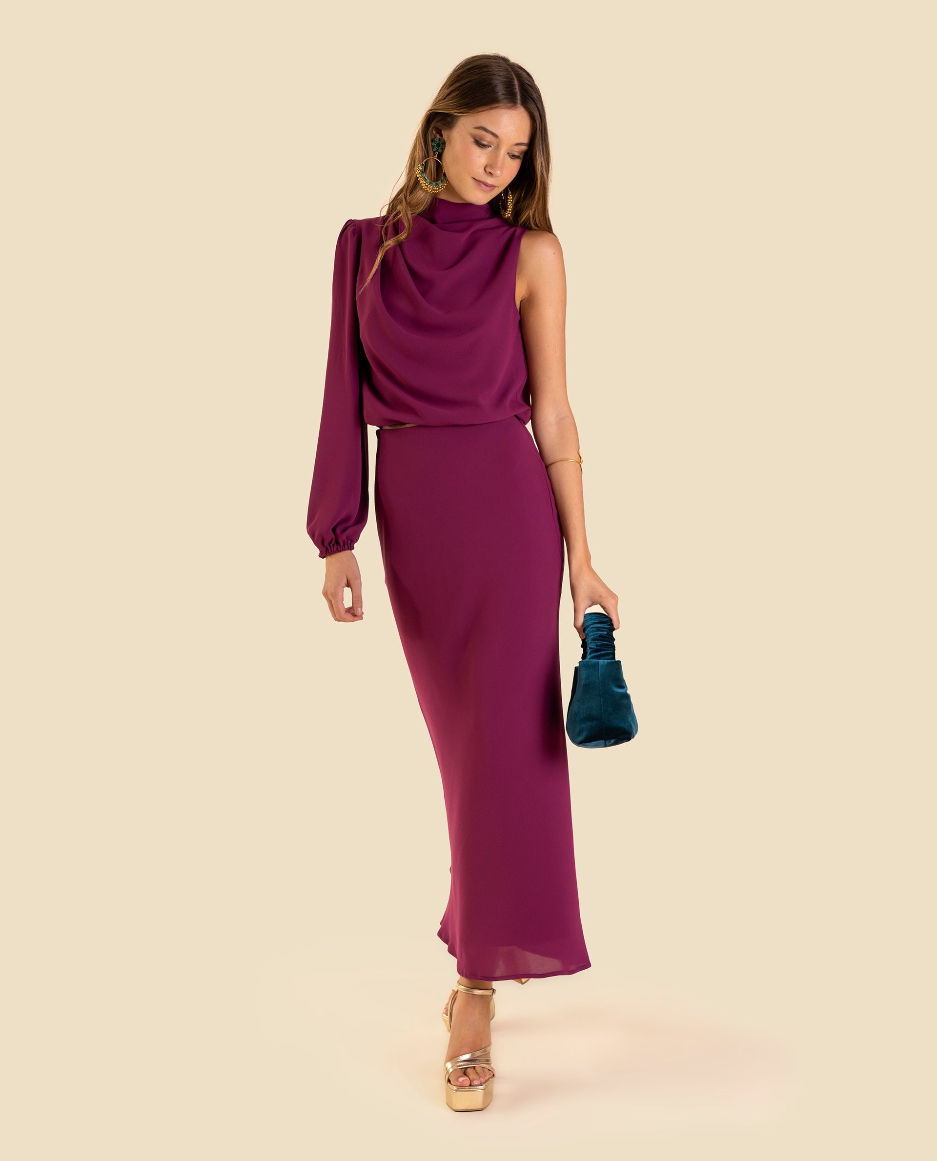 Falda de tubo midi elegante con vuelo.[readmore]Nos encantan los conjuntos de dos piezas para una ocasión especial por su versatilidad y estilo. En esta colección, la falda Mrs. Arriaga destaca por su diseño ajustado con un poco de vuelo en el bajo que no puede ser más elegante. Es de talle alto, con la cintura elástica para un ajuste perfecto y el tejido es uno de los más especiales, una gasa con una caída preciosa. El efecto óptico del total look es un vestido, pero al ser dos piezas podrás combinarlo de diferentes formas. Completa el look con la Blusa Mrs. Arriaga para lucir espectacular durante el gran día!