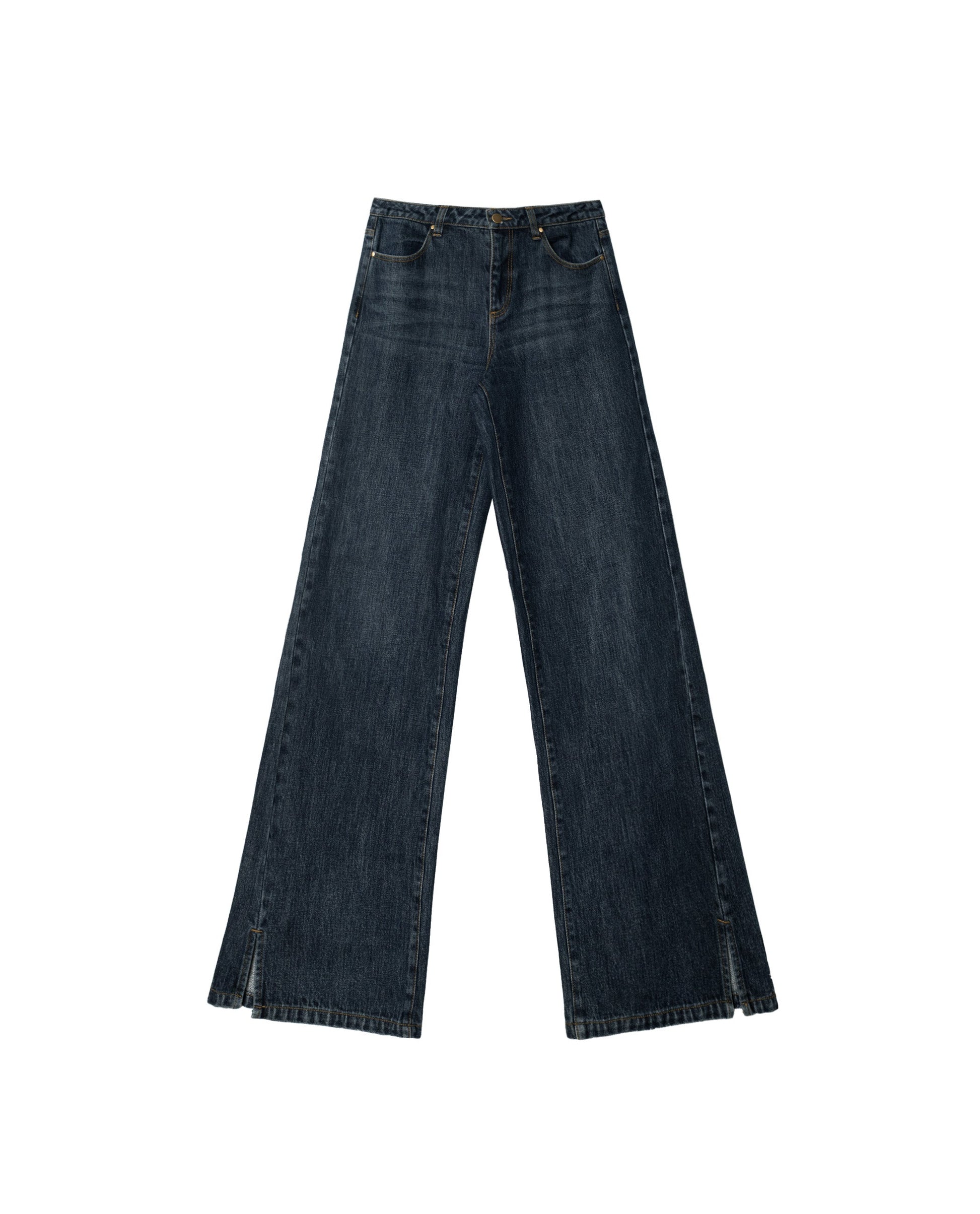 Vaquero tiro medio con costura lateral adelantada y abertura en el bajo.[readmore]Vaquero azul lavado. Fit recto y alto medio, on costura lateral adelantada que termina en abertura, para llevar con bailarinas, mocasines o botines. Cierre de cremallera y botón; trabillas anchas y cruzadas atrás para ajustar con cinturón.[sizes]La modelo de estudio mide 1.75 y lleva habitualmente la XS de top y 34 de pantalón. De este pantalón lleva la talla XS.