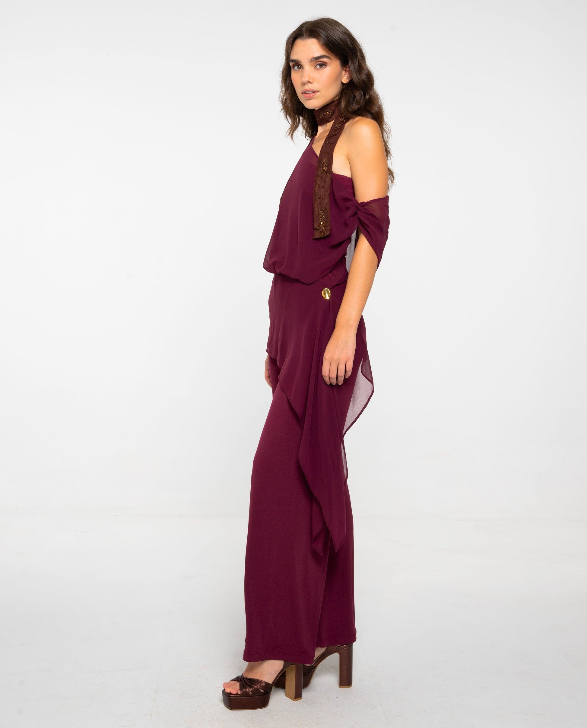 Mono de punto y gasa multiposición.[readmore]Si buscas un diseño original, este mono es perfecto para ti. Diseñado con un tejido de punto elástico, su detalle más especial es la gasa multiposición que envuelve el cuerpo y puedes llevar de diferentes formas según el estilo que quieras con su lazada a la cadera. La versatilidad de este mono permite adaptarlo a distintas ocasiones, combinando perfectamente con accesorios dorados o toques de color.