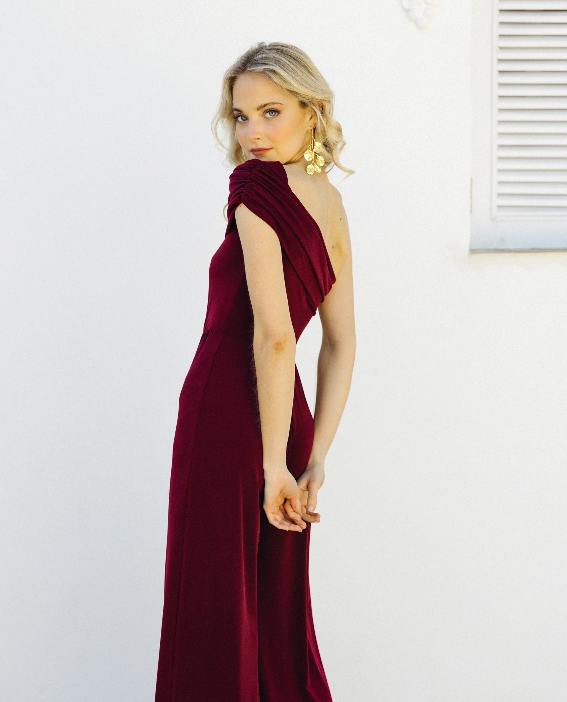 Mono largo con un hombro al descubierto.[readmore]Nuestra diseñadora ha conseguido la combinación perfecta de un mono elegante y sexy para invitadas. El escote bardot asimétrico tiene un drapeado muy elegante y deja los hombros completamente al descubierto. Hemos elegido el tejido de punto elástico porque sabemos que os encanta ir cómodas a un evento, se adapta a la perfección. El pantalón es de corte recto, con mucho movimiento al caminar, perfecto para llevar tacones con plataforma!! Una vez te pruebes este mono de invitada sentirás que está hecho para ti.😊