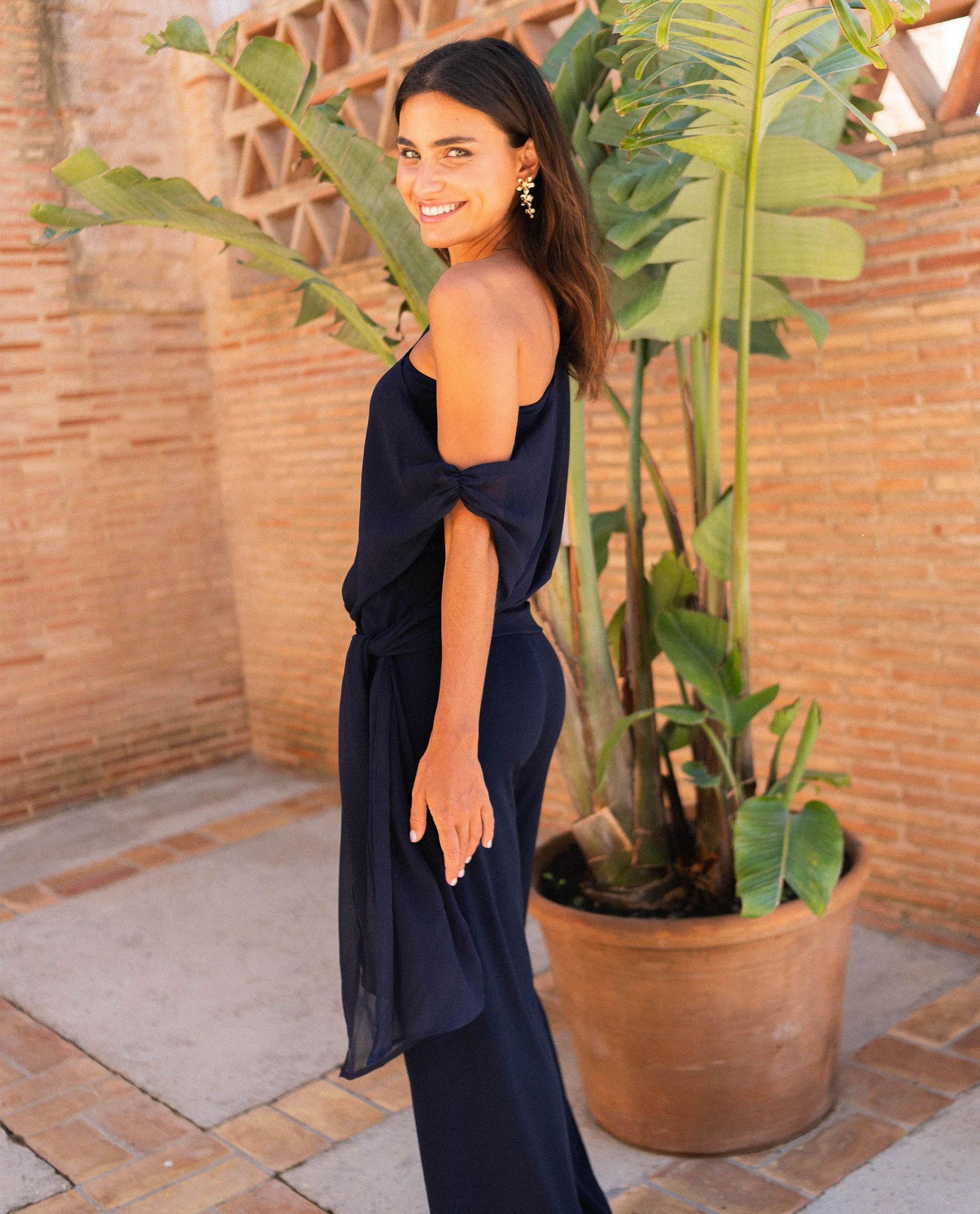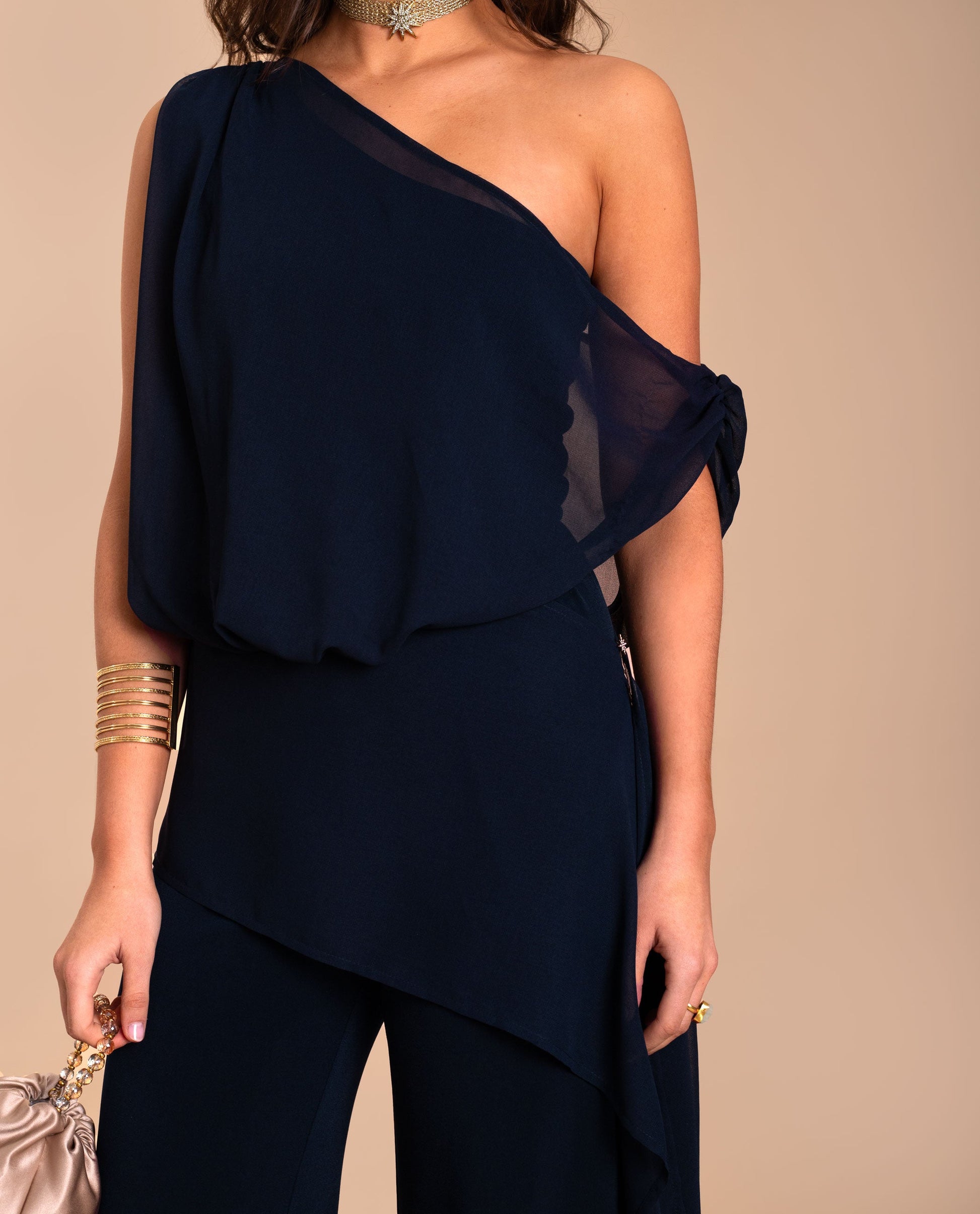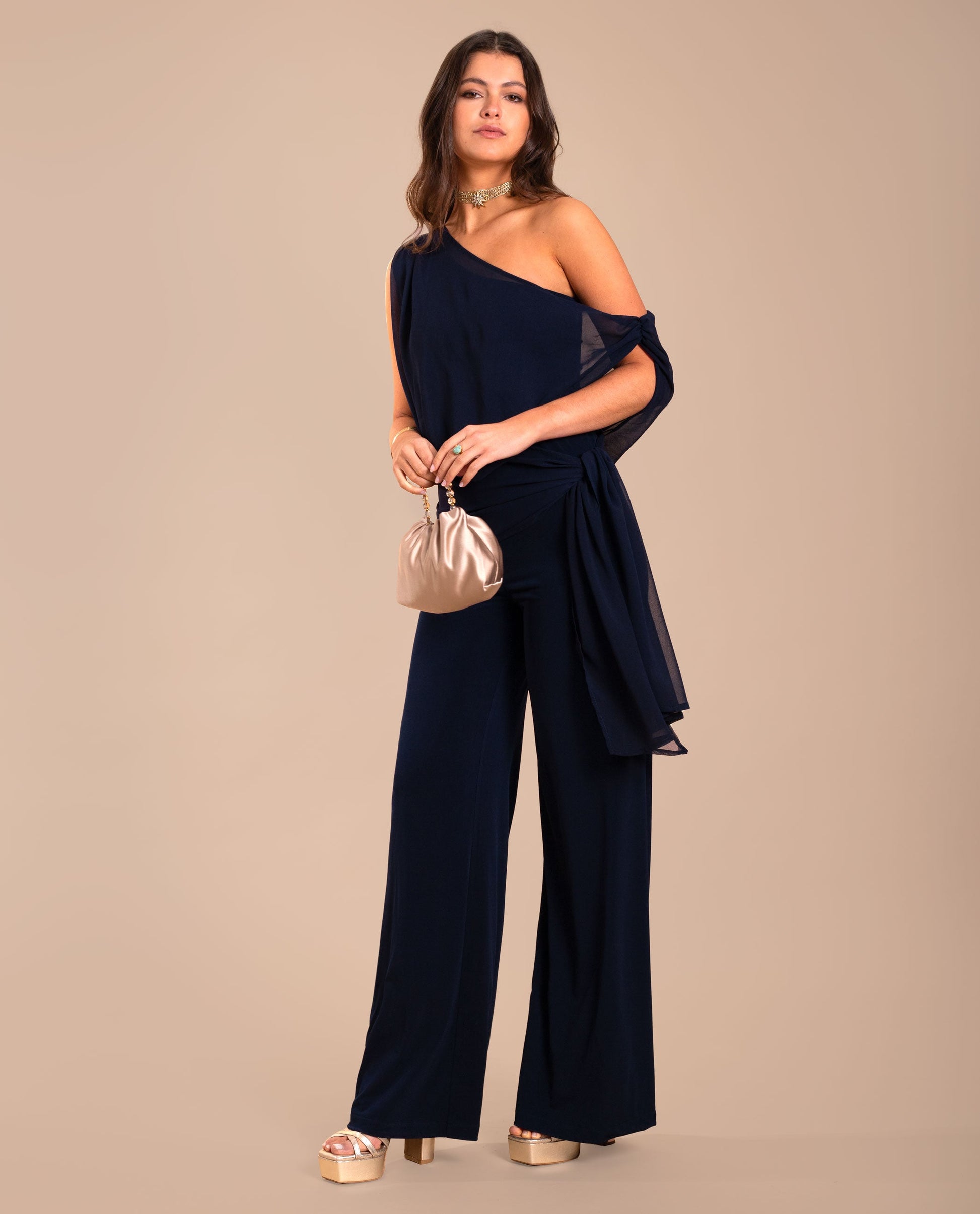 Mono de punto y gasa multiposición.[readmore]Si buscas un diseño original, este mono es perfecto para ti. Confeccionado en un tejido de punto elástico, su detalle más especial es la gasa multiposición que envuelve el cuerpo y puedes llevar de diferentes formas según el estilo que quieras: desde un look más estructurado hasta uno más relajado. La versatilidad de este mono permite adaptarlo a distintas ocasiones, combinando perfectamente con accesorios dorados o toques de color.