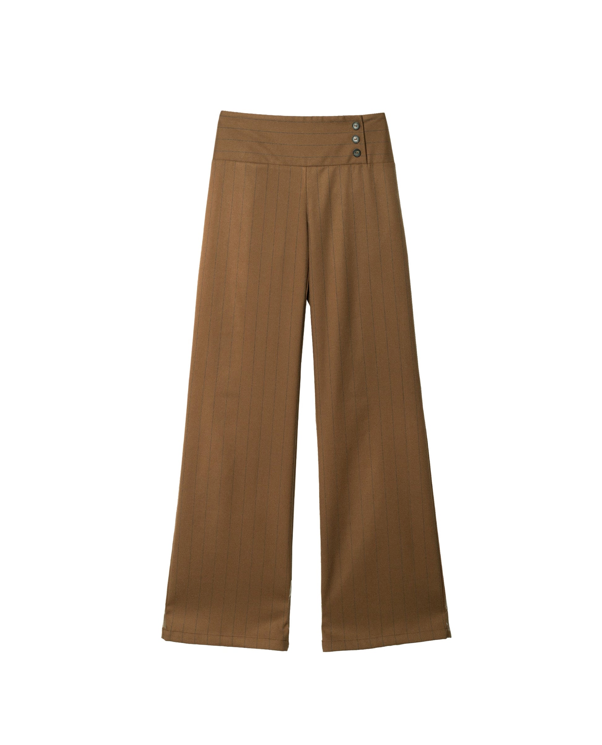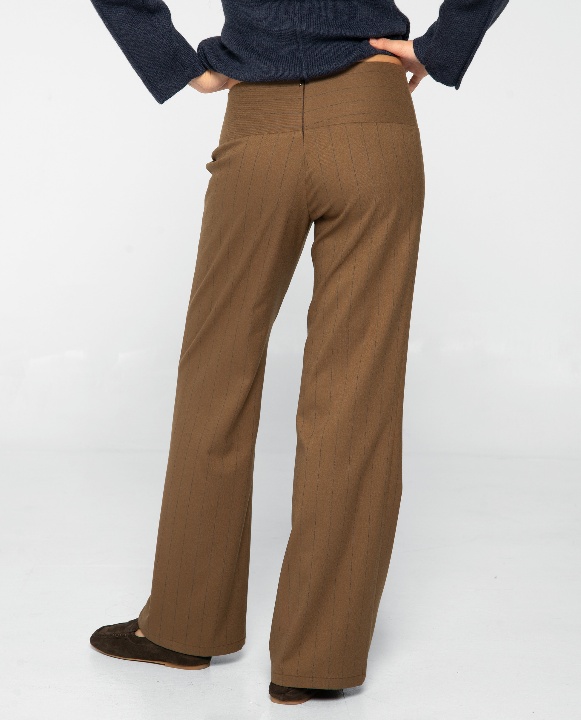 Pantalón largo de rayas marrón y gris[readmore] ¡Uno de vuestros favoritos en un nuevo color! Pantalón de rayas con pernera recta y amplia. La cinturilla ancha con tres botones y cremallera invisible aporta un ajuste limpio y cómodo. Llévalo con camisa y blazer o con top y zapatillas.[sizes] La modelo de estudio mide 1.67 y lleva habitualmente la XS de top y 34 de pantalón. De este pantalón lleva la talla XS.