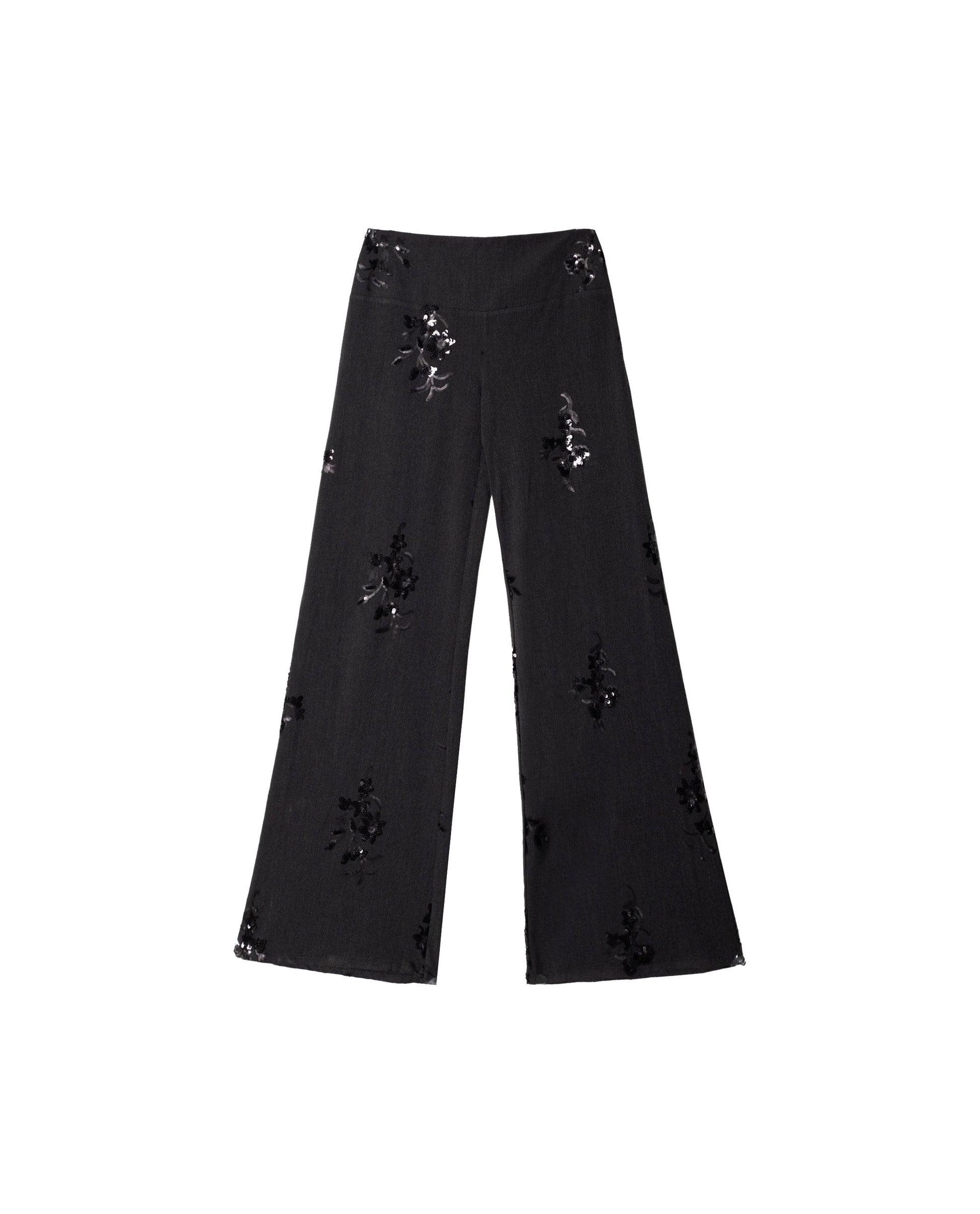 Pantalón largo de talle bajo y pata ancha gris con bordados florales de lentejuelas negras.[readmore]Si estás en búsqueda de esos pantalones classy but cool, sin duda estos son tus pantalones. Nada más ver el tejido nuestro equipo de diseño supo que querría tenerlo en la colección. Han diseñado estos pantalones largos de talle bajo con cremallera lateral. El camal es ancho, para un estilo effortless cool.[sizes]La modelo de estudio mide 1.77 y lleva habitualmente la XS de top y 34 de pantalón. De este pantalón lleva la talla XS.