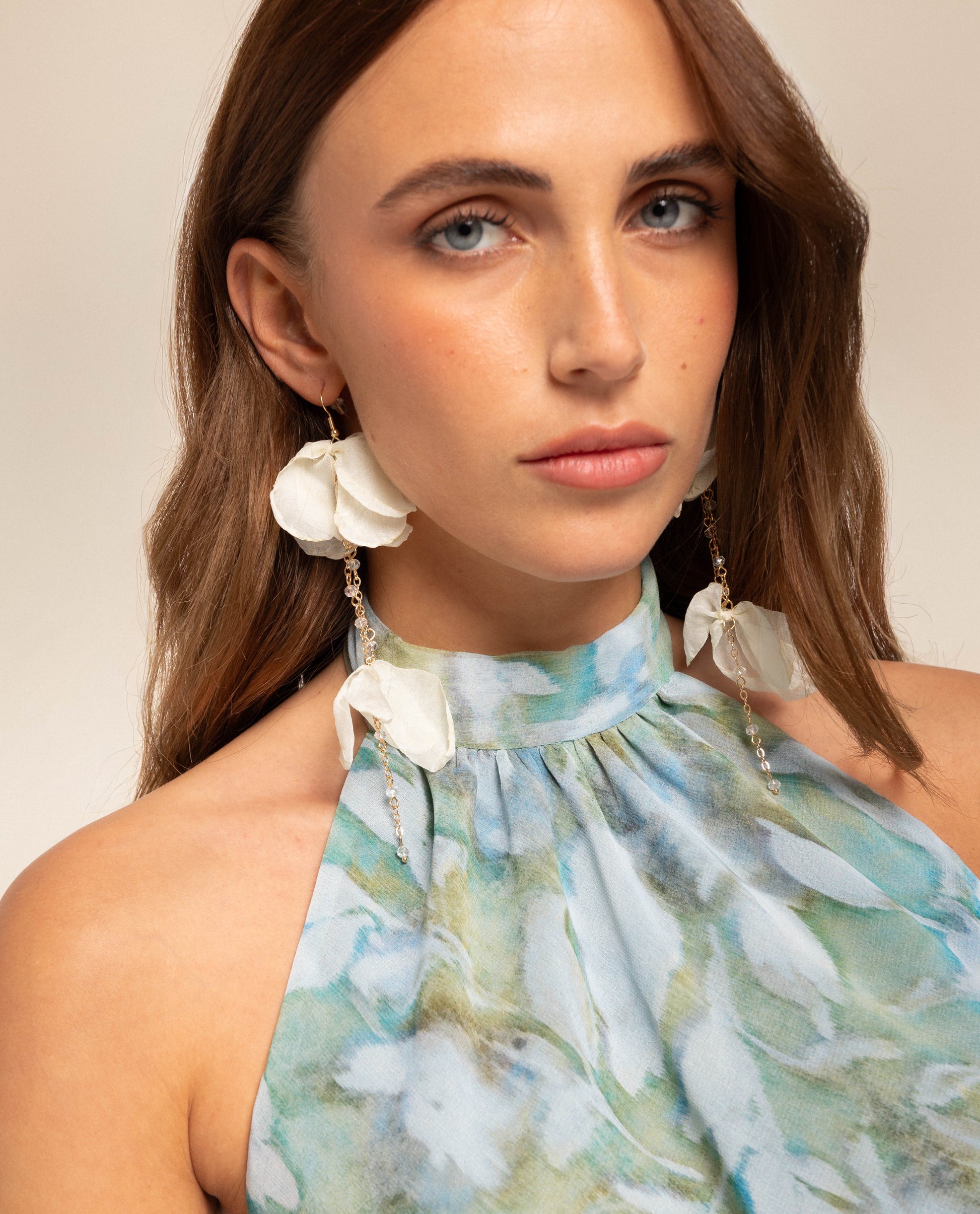 Pendientes con pétalos de gasa [readmore] Nos encanta el diseño romántico y llamativo de estos pendientes florales XL. Es un accesorio con mucho movimiento y personalidad. Ideales para combinar con el pelo recogido y dejar que los pétalos enmarquen el rostro. *Ten en cuenta que este artículo es un complemento/accesorio y, por cuestiones de higiene, estos productos no admiten cambios ni devoluciones. [sizes]