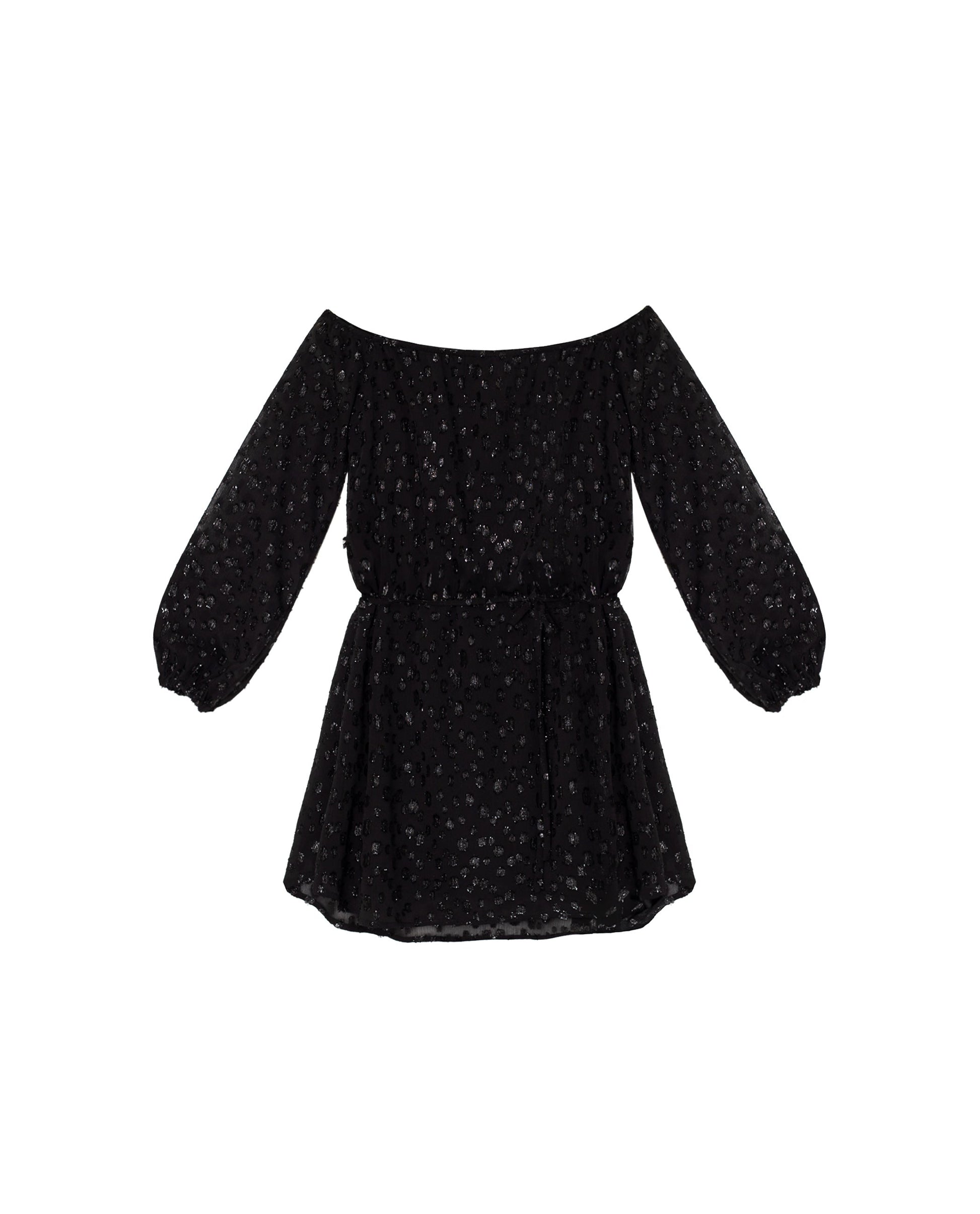 Vestido corto negro con escote palabra de honor y forro pantalón[readmore]Uno de los favoritos de nuestra colección es este vestido corto que te encantará por lo bien que sienta. Su diseño es uno de los más favorecedores, incluye una una cinta ajustable en la cintura que te permite llevarlo ablusado o suelto, según tu estilo. Confeccionado en una gasa negra con plumeti bordado y un toque de brillo, es ideal para llevar en cualquier ocasión. ¡Prueba a combinarlo con joyas en plata!